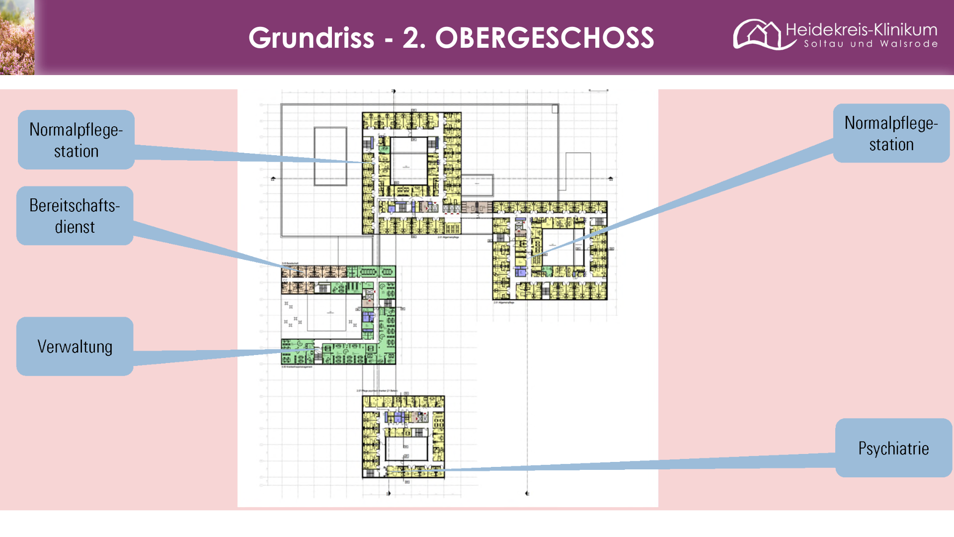 Bettenanzahl:345 Planbetten, davon 175 Betten in Einbett-Zimmer, 170 Betten in Zweibett-Zimmer, zzgl. 31 Tagesklinische Plätze